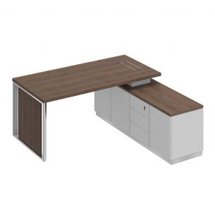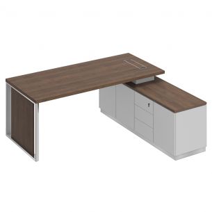 Взяли стол без тумбы, так как наш руководитель предпочитает больше свободного пространства. Для хранения документов и прочих вещей тумбы заказали отдельно. Кабинет выглядит подобающим образом — невычурно и стильно. Поскольку мебель довольно дорогая, было бы хорошо, чтобы её сборка входила в стоимость. Тем не менее большое спасибо за оперативную доставку и сборку.