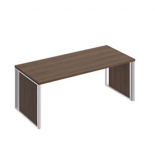 Металлические опоры замкнутого контура из труб овального и прямоугольного сечений из нержавеющей стали с глубокой полировкой. Возможность установки в опорах декоративных вставок из ЛДСтП в цвет столешниц.