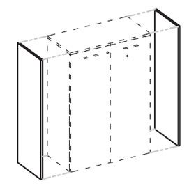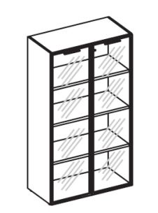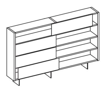 В коллекции представлен книжный шкаф с раздвижными створками размерами 300*45*179. Раздвижные створки имеют доводчик закрывания и могут иметь покрытие из шпона, натуральной кожи или облицованы керамогранитом. Шкаф имеет регулируемые опоры.