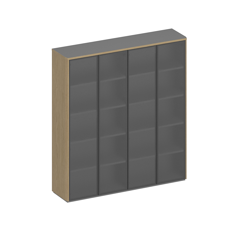 Шкаф для документов высокий со стеклом (стенка из 2 шкафов) 187.2x46.1x198.2 дуб грейдж