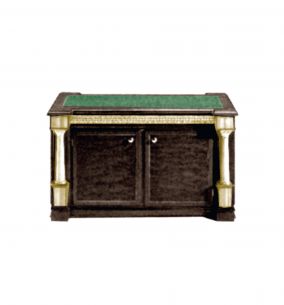 Кабинет TUDOR – эксклюзивная офисная мебель для руководителей высшего состава. Весь декор выполнен вручную с использованием технологии золочения. Декоративные элементы защитной панели стола, фасадов тумб и шкафов, боковых поверхностей столешниц изготовлены из массива красного дерева и ясеня. Позолота на них олицетворяет излучение божественной силы, силы огня и пламени. Пятнистая масть отделки в натуральном шпоне «радика бубинга» настолько же очаровательна, насколько практична и не требовательна в уходе.