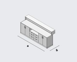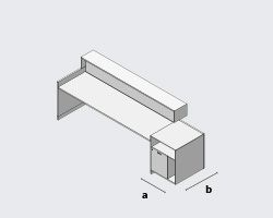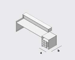 Основная концепция стойки – это модульные конструкции, разных размеров и отделок, из которых можно составить множество вариантов для создания функциональной и изысканной рабочей среды. Панели и столешницы изготовлены из плит толщиной 28мм. Надстройка изготовлена из панелей, которые соединяются между собой под углом 45 градусов. Внутри надстройки предусмотрены углубления для хранения предметов. Ниши изготовлены из окрашенного металла. Внутренняя столешница имеет глубину 70 см и с одной стороны оснащена щеточкой для скольжения проводов. Тумба изготовлена из панелей толщиной 18мм. В тумбе при необходимости можно установить мини холодильник. Под выступающей надстройкой установлена светодиодная лента для подсветки фронтальной панели.